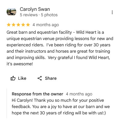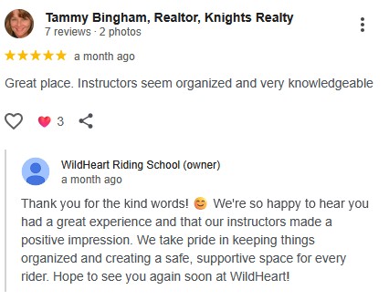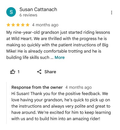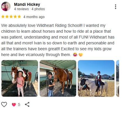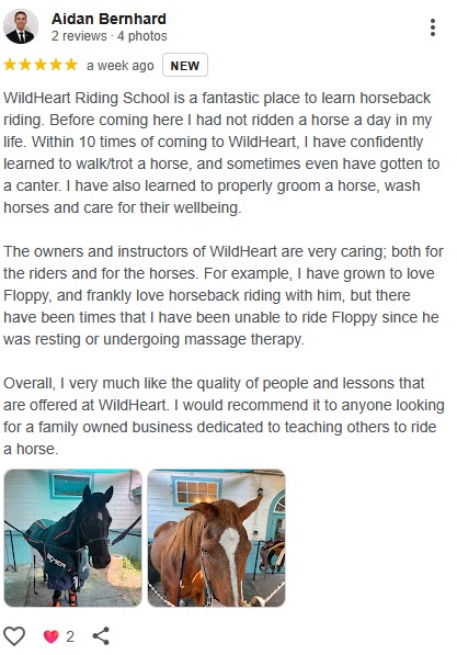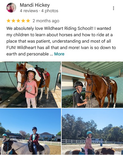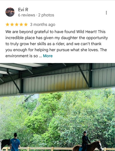 WildHeart offers riding lessons for BOTH children and adults! We have a ton of adult riders that are either coming back into riding, want to start something new, or just want to ride for pleasure & relaxation. Youâre not alone! We even have parents that ride with their children as a form of bonding and being outdoors.