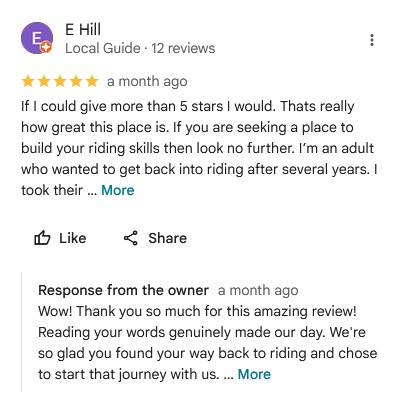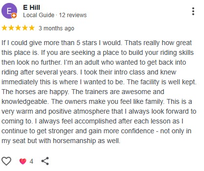 Whether youâre bringing your child for their first ride, getting back into the saddle after a break, or learning something new just for youâthis is your place.